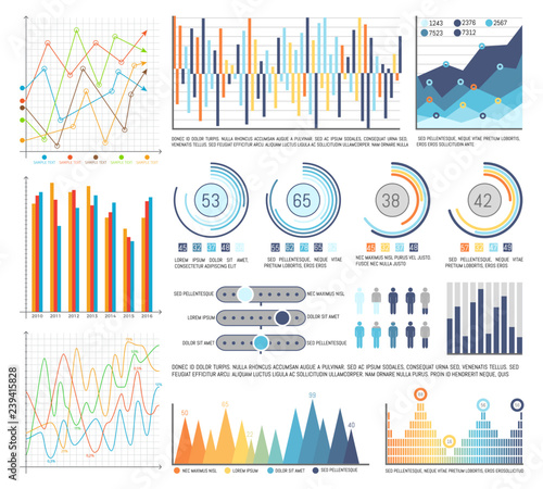 Modern infographic template with stock diagrams and statistics bars, line graphs and charts for finance report. Diagram template and chart graph,UI and UX Kit with big data visualization. Vector