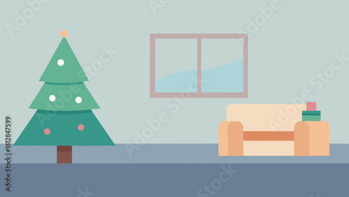 Cozy minimalist living room scene with christmas decorations