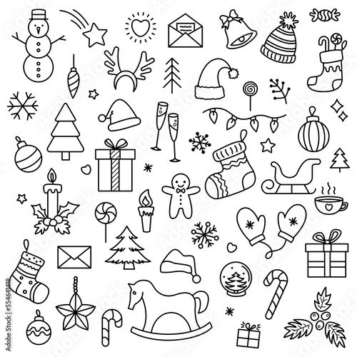 Christmas elements vector, Christmas illustration vector, New year banner, Abstract isolated Christmas items, Christmas food, drink, tree, decoration, light, clothes, gift, New year collection
