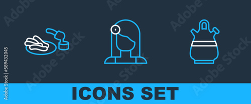 Set line Sangria pitcher, Churros and chocolate and Spanish woman icon. Vector