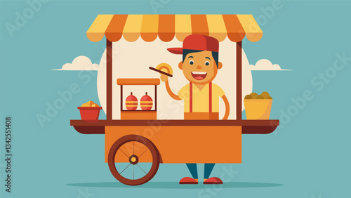 The churro carts friendly vendor greeted each customer with a warm smile adding to the welcoming atmosphere of the scene.. Vector illustration