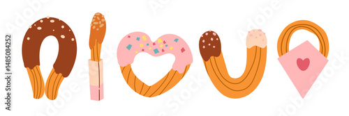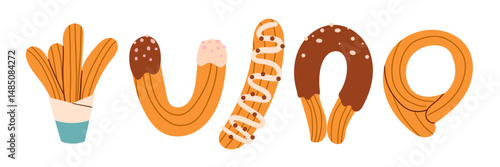 스페인 겨울 간식 추로스, 츄러스 일러스트(Vector Spanish winter snack churros, churros illustration)