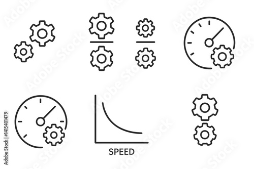 Collection of modern business icons representing data analysis, finance, and productivity tools in a flat design style