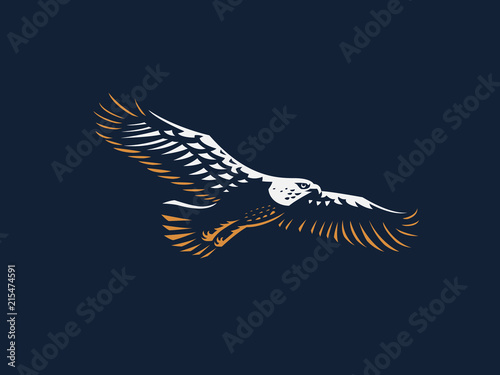 Eagle emblem isolated on white illustration. American eagle. Bird symbol of freedom and independence. Retro color logo of falcon.