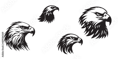 Set of abstract eagle or hawk head isolated on white background. Template for design mascot, label, badge, emblem or other branding. Vector illustration.