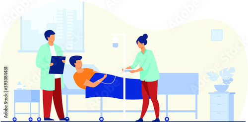 Patient getting a treatment from doctor and team. Medical Check Up Concept. Flat vector illustration isolated.