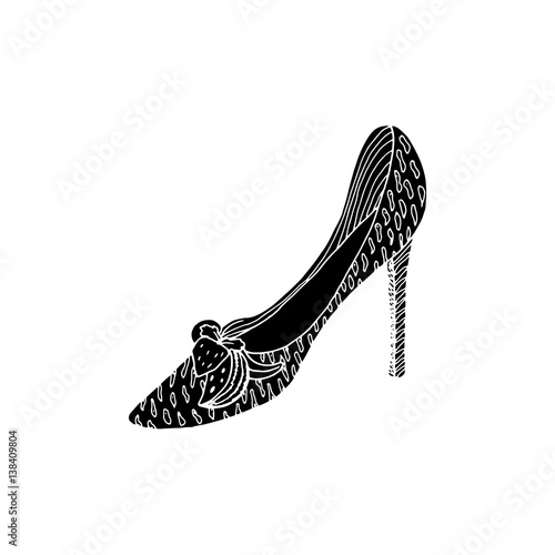 Monochrome vector illustration of a women's shoe, isolated on a white background.