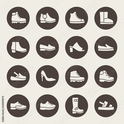 Shoes icons set on background for graphic and web design. Simple vector sign. Internet concept symbol for website button or mobile app.