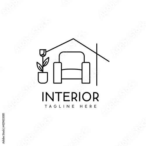 Simple minimalist abstract furniture interior logo design with flat vector graphics