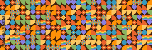 Geometric tile seamless pattern with Rainbow colors of pride month. Geometric LGBT Pride background, banner. Vector illustration