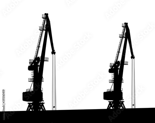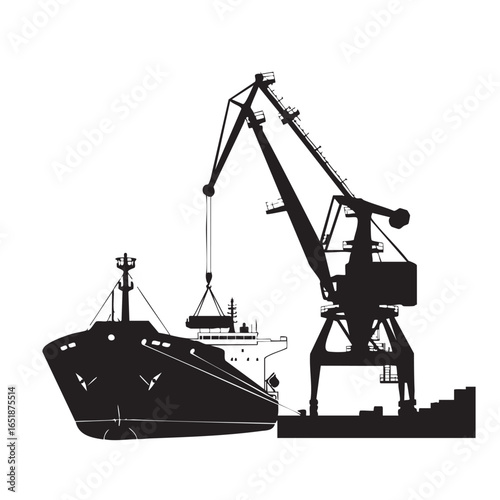 Striking silhouette of a busy industrial harbor with cranes loading cargo on a ship for global trade