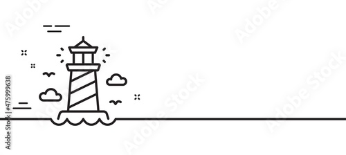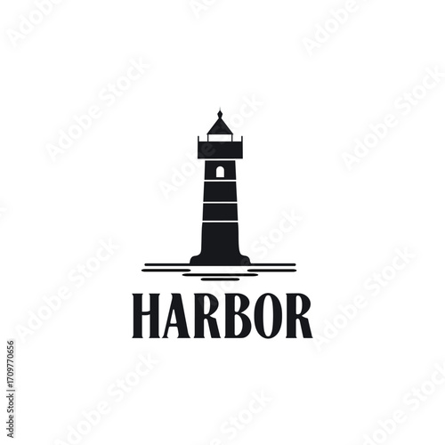 Lighthouse, sea pier, harbour logo or label. Nautical concept. Typographic design vector