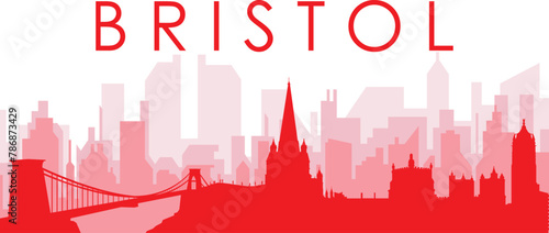 Brown panoramic poster of the city skyline with misty background buildings, sunrise, clouds and mountains of BRISTOL, UNITED KINGDOM