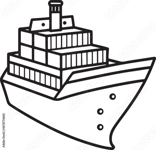 Cargo & Passenger Ship Icons: Black Flat Vector Set for Marine Transport