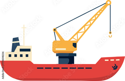 Dredging Ship with Crane Arm Marine Engineering Vector