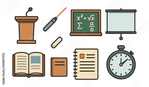 Collection of web icons representing communication, education, and digital interaction in various formats for tech applications