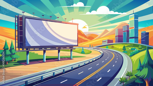billboard on highway , advertising board in highway, blank white board isolated white background  Very beautiful