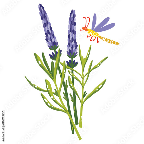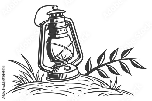Monochrome Engraving Style Lavender Plant