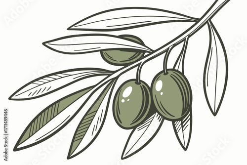 Olive Branch for olive oil logo or olive icon, hand drawn olive branch botanical herbs elements in vector format, floral olive frame and border and virgin oil