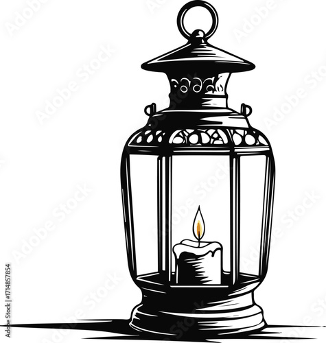 watercolor of Candle In Lantern, vector, isolated on a white background.