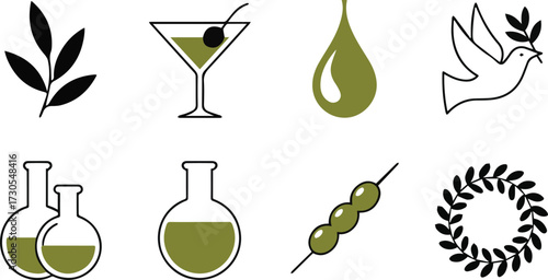 creative leaf and olive oil logo design icon set.