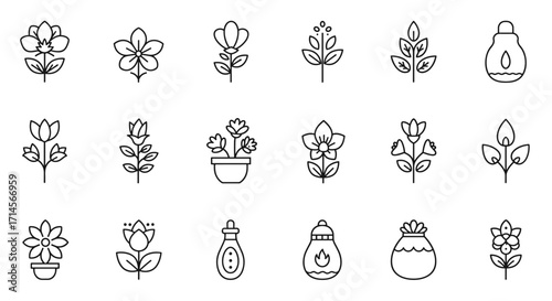 Vector icon set of herbal plants and flowers including echinacea, ginger, turmeric, and more for health and wellness design