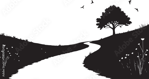 Serenity and Calmness in Nature With a Peaceful Woman Illustration