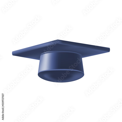 Realistic Blue graduate cap. 3D Graduation Doctoral hat.
