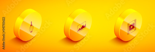 Set Isometric line Photo retouching, camera, Softbox light and Camera roll cartridge icon. Vector