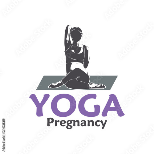 Vector illustration of a pregnant woman doing yoga pose with minimalist and modern design. This image is suitable for use in promotional materials for prenatal yoga classes, maternal health, and etc.