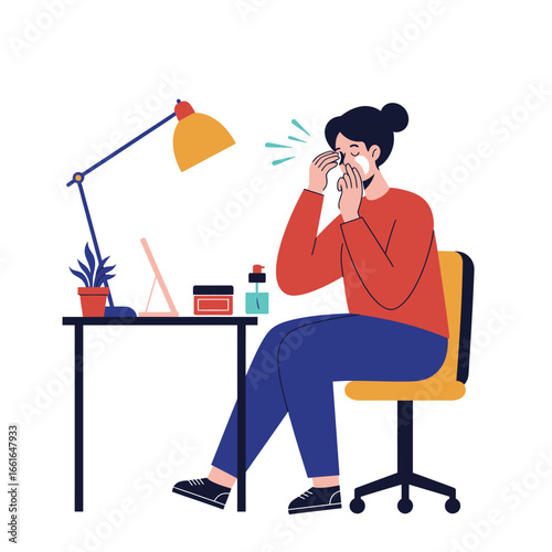 woman who has an allergy or virus. vector illustration.
