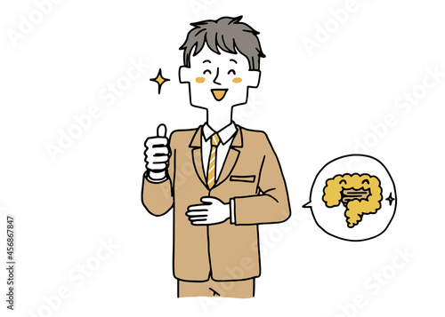 ポップな青いスーツのビジネスマン「上り調子」「伸び盛り」