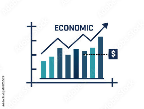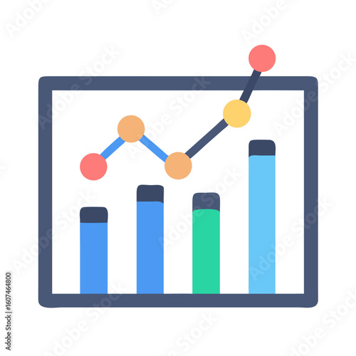 Hand drawn upward trending line graph with circles and bars signifying growth and progress, perfect for financial reports, business presentations, and economic analysis.