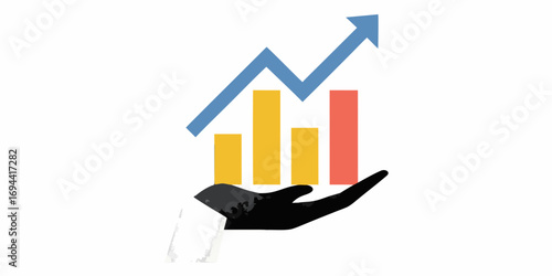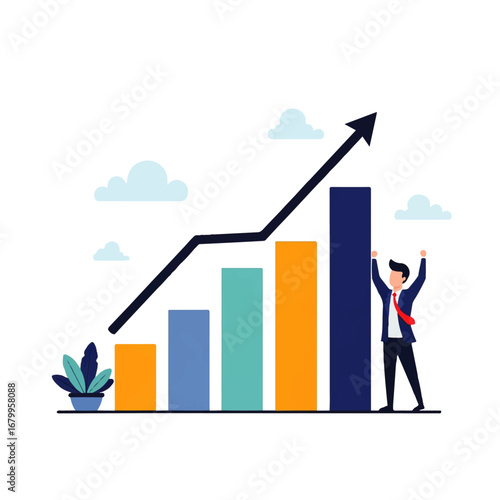 Bar graph chart business analysis with arrow trending upwards graphic design