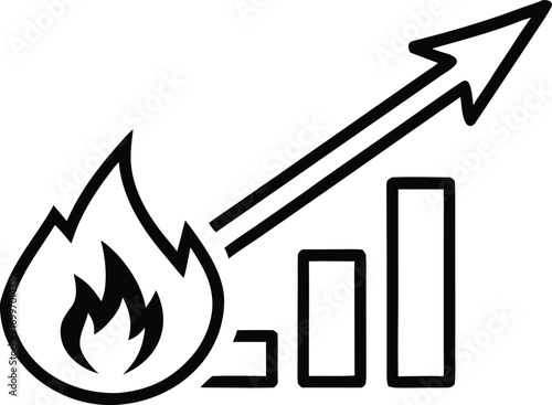 Single black arrow growing pointing up on chart graph. Bars icon, success graph trending upwards, interface infographic element for app and web button. Vector illustration eps 10