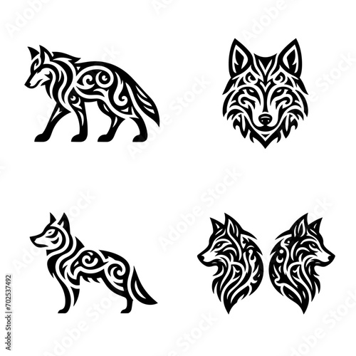 tribal tattoo wolf designs. Vector Black silhouettes. with white background