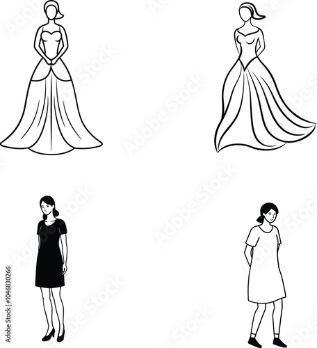 Elegant black dress silhouette perfect for evening wear or formal occasions, Women black dress silhouette vector illustration