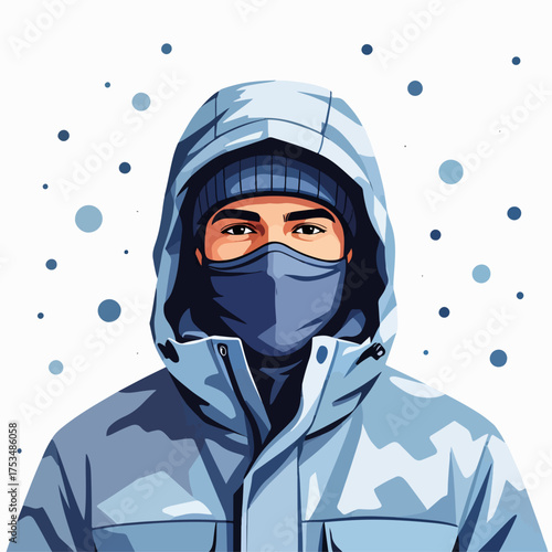 Flat illustration of a man doing hiking on mountain in winter