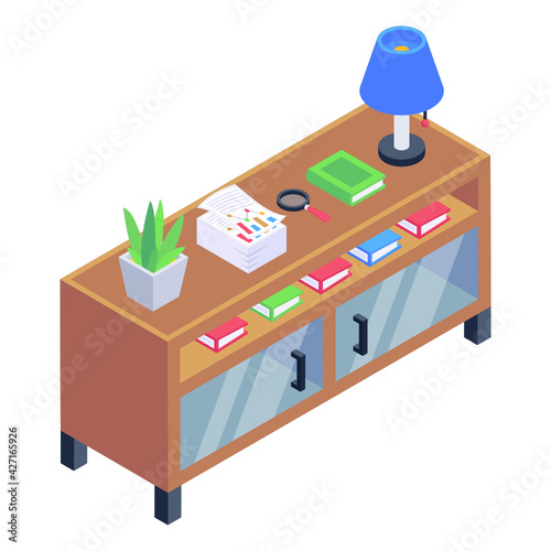 Office desk, computer workspace, writing worktable, 2D vector, home Interior furniture, flat illustration icon, table outline and filled graphic