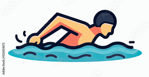 Stylized illustration of a swimmer executing a graceful dive into a breaking ocean wave, depicted with vibrant, dynamic lines and colors.