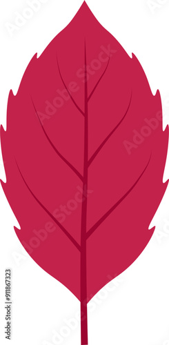 Red wild grape leaf with twig in flat design. Fall herbarium foliage. Vector illustration isolated.