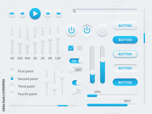 User registration UI elements kit. New account isolated vector components. Flat navigation menus and interface buttons template. Web design widget collection for mobile application with dark theme