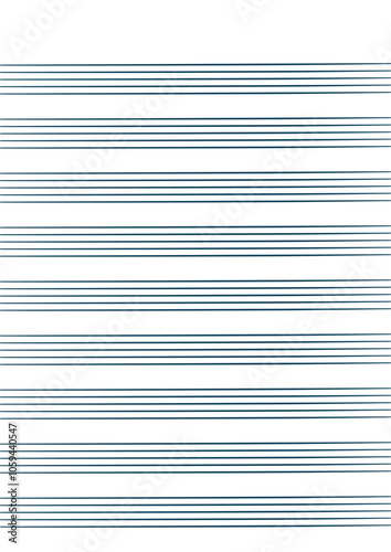 Graph paper. Printable grid paper with stave on a white background. A blank music sheet paper with staff. Geometric pattern for composition, education, school. Realistic lined paper blank size A4.