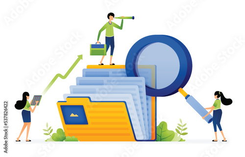 Concept for business analysis and planning, team work, consulting, project management, financial report and strategy. Flat vector illustration