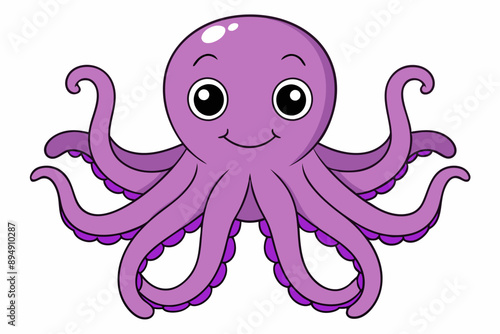 Stylized cartoon octopus with blue eyes and crescent head on white background illustration