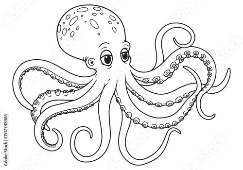 Funny Octopus Vector Illustration Cartoon, Clipart And Line Art Design on White Background, Funny octopus cartoon vector with white background: clipart, illustration, and line art design.