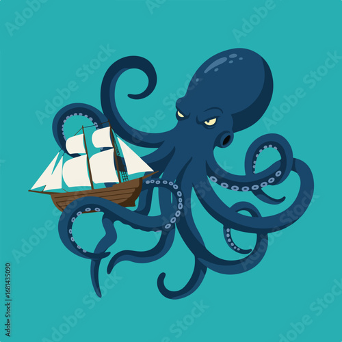 Octopus tentacle vector giant illustration monster sea creature. Octopus tentacle squid ocean icon