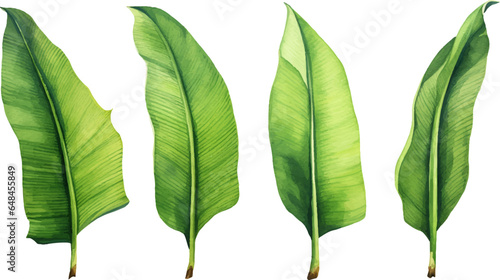 Watercolor colored tropical leaves png. Palm leaves, jungle leaves, monstera leaves, exotic botanical floral pattern. Vector illustration