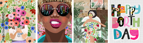 Cute illustration of a girl doing a summer skincare routine: cleansing oil, foam cleansing, and towel drying.