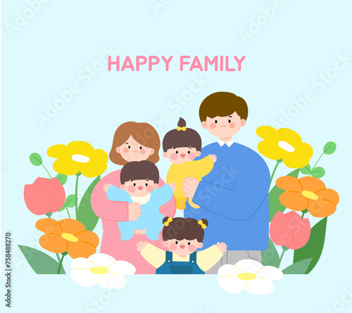 cartoon family is  smling happily